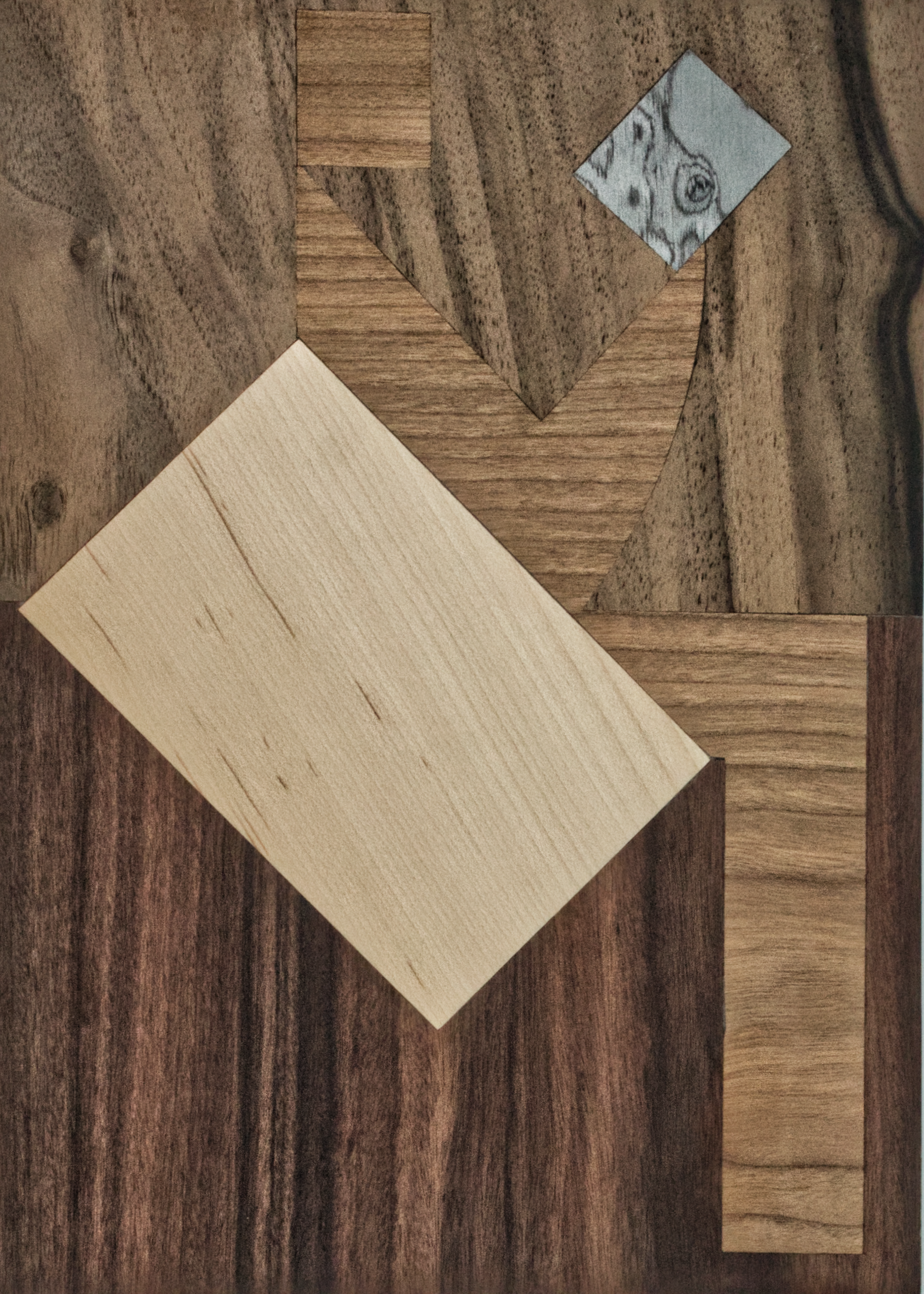 Es handelt sich um eine Intarsie, die eine abstrakt dargestellte lesende Person zeigt.